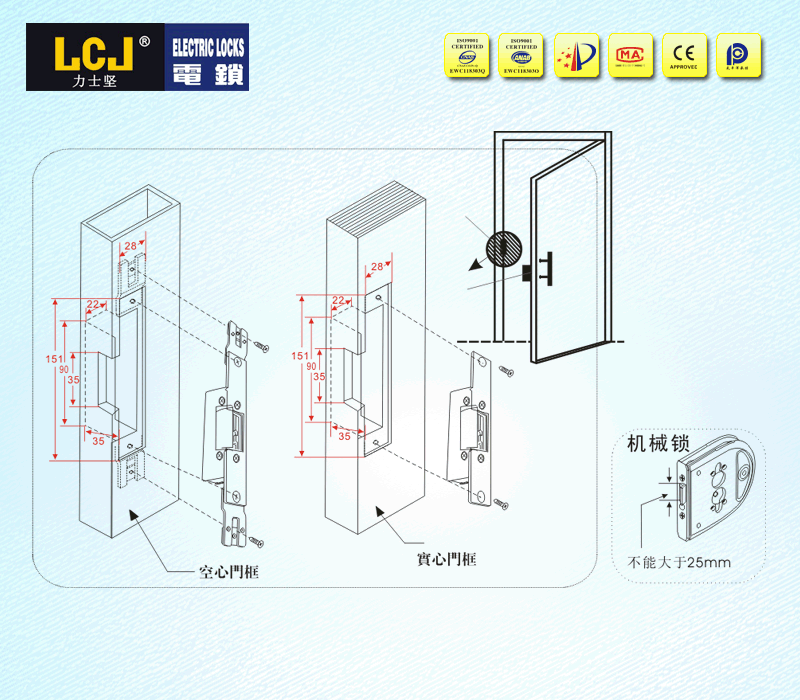 产品功能:搭配机械锁配套使用,实现智能控制与手动开启双开门工作模式。 通电上锁、断电开锁,保障财产安全,配套机械锁使用,满足消防要求,可通过机械锁打开。