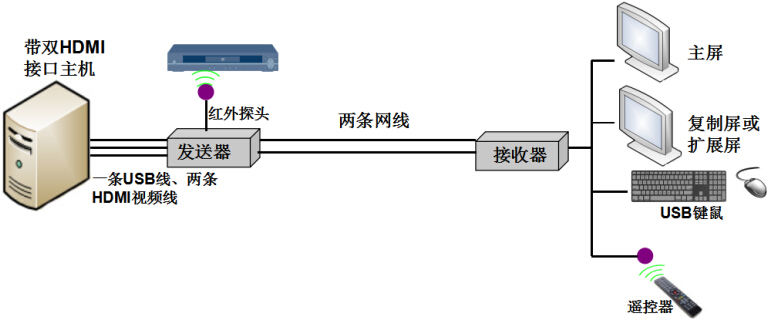 HDB2-70DU (双屏HDMI+USB键鼠+红外延长70米)
