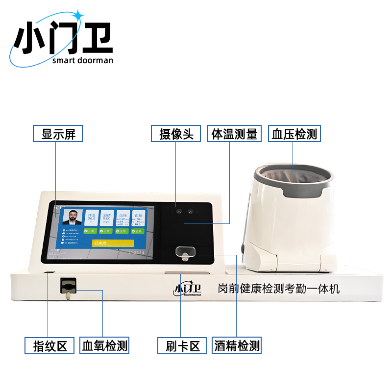 小门卫岗前酒精检测打卡血压血氧测温一体机