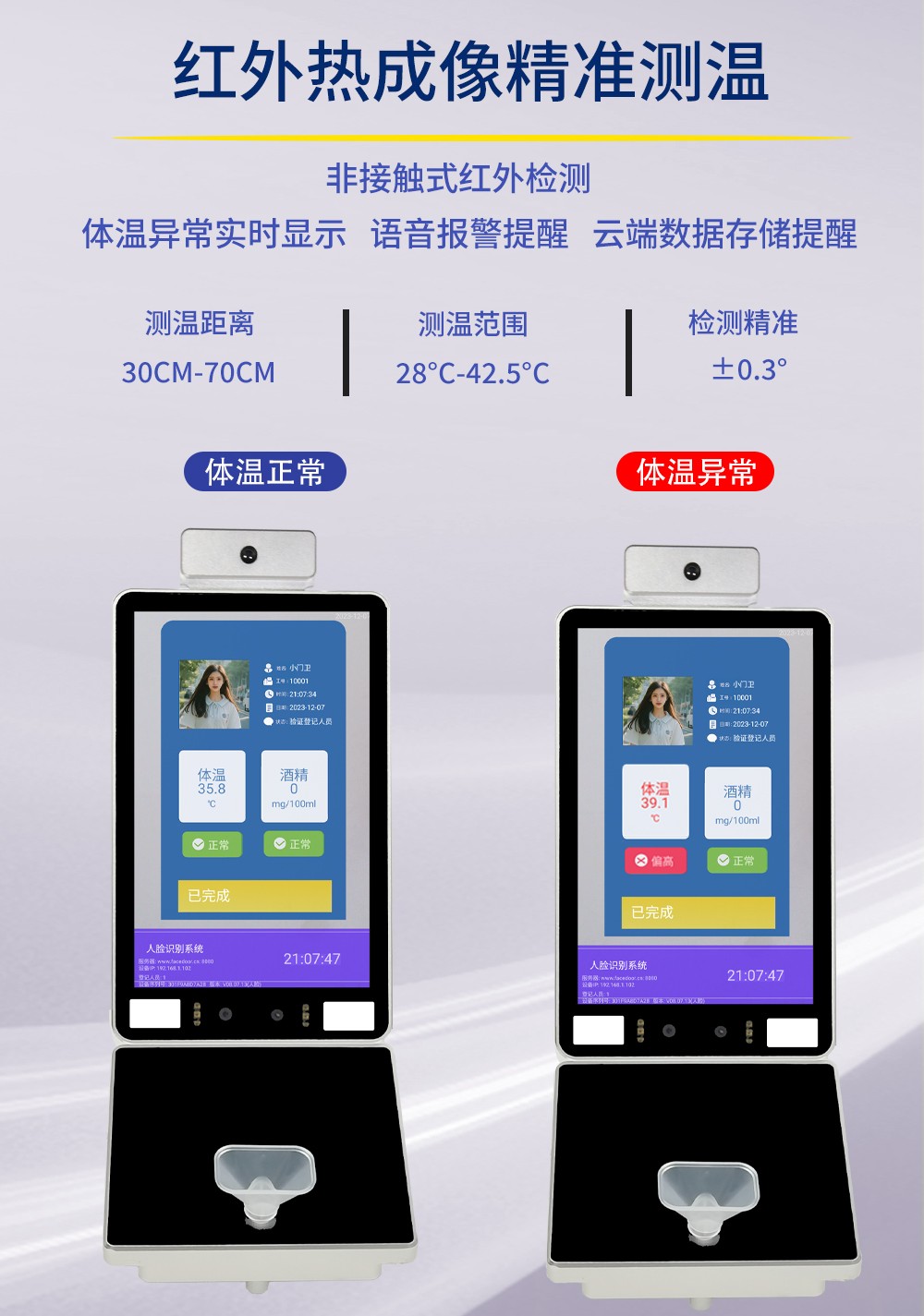 壁挂式人脸识别酒清检测考