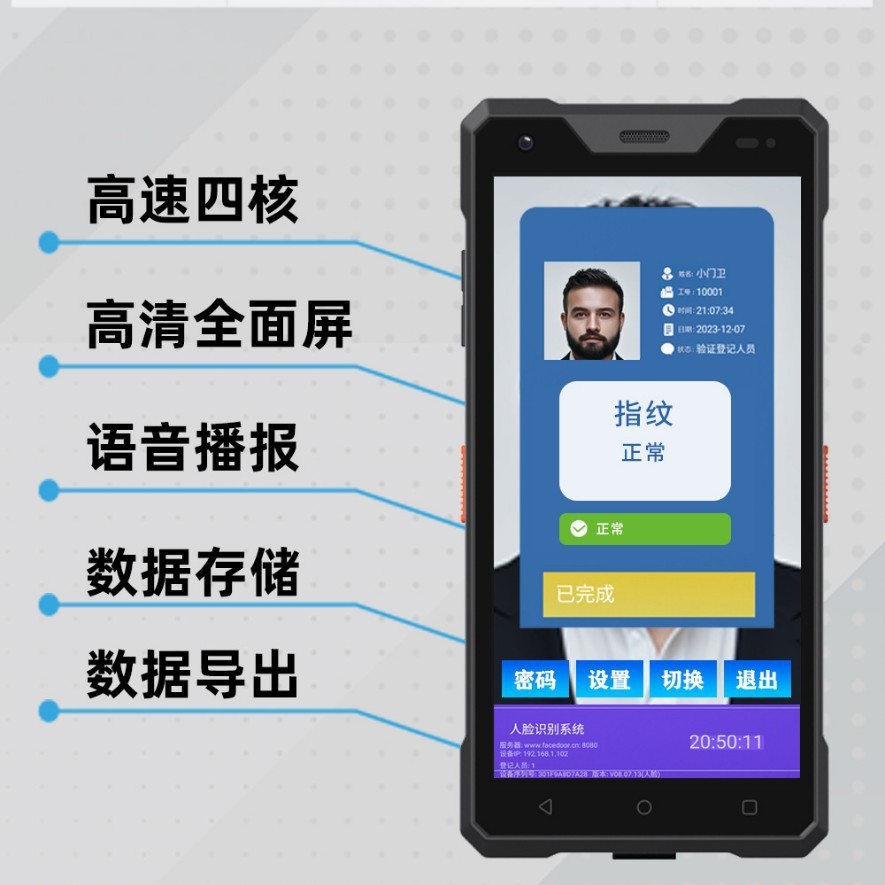 小门卫手持可移动人脸识别酒精检测考勤一体机将人脸识别、酒精检测、考勤打卡功能整合于便携设备中,打破固定设备的场景限制,尤其适合需要移动核验的场所。机身轻巧,支持手持或短时放置使用,无需固定安装,可随时随地开展核验工作。同步实现人脸识别考勤、酒精浓度快速检测、人员身份核验,一个设备解决多重管理需求。支持离线模式,无网络环境下也能正常工作,适配户外、临时场地等复杂场景。