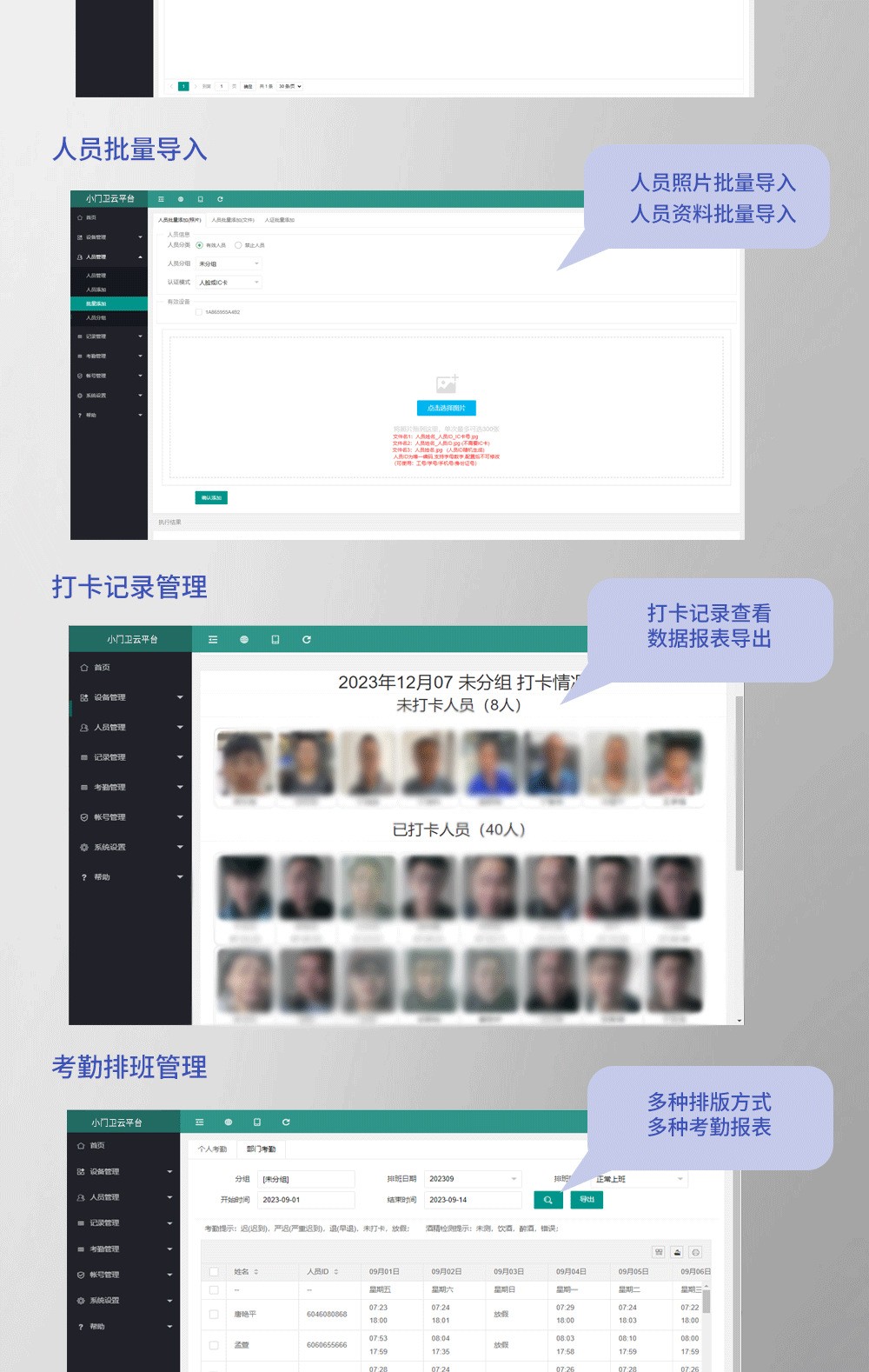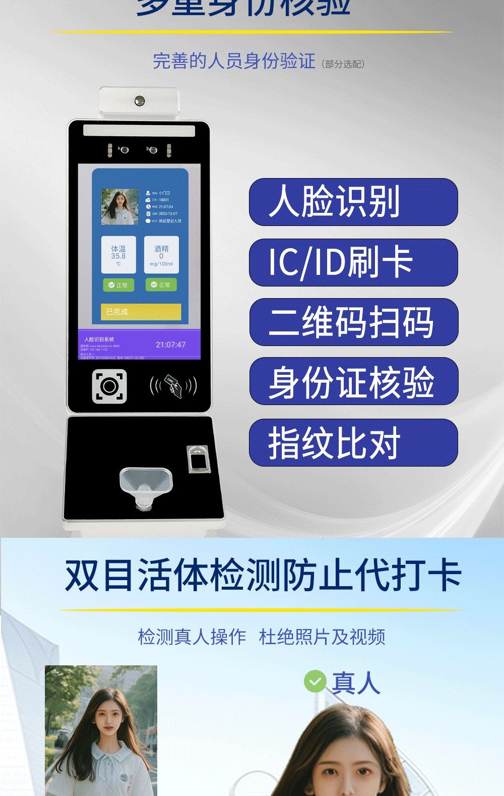 小门卫门岗自动刷脸感应门IC/ID卡二维码动态门禁,利用人脸识别技术,业主站在门岗机前,设备通过摄像头采集人脸信息,并与预存的人脸数据进行比对。采用脱机人脸识别技术,支持双目活体检测,可识别多种人种,人脸库容量可达100000,识别距离为 0.5 - 1.5M。这种方式无需业主携带卡片或其他设备,通行速度快,安全性高,适用于大多数能够熟练使用人脸识别技术的业主。