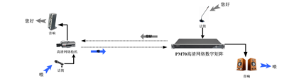 键盘、客户端与高清网络矩阵之间通过文字和图标实现互动功能。