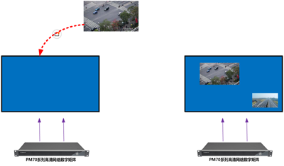 大屏拼接显示 | 单机支持8屏任意拼接显示,多设备级联最大支持72屏拼接; |