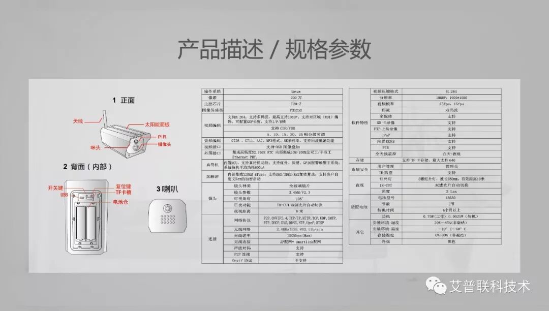艾普联科低功耗太阳能枪机 太阳能供电 PIR唤醒 手机APP远程唤醒